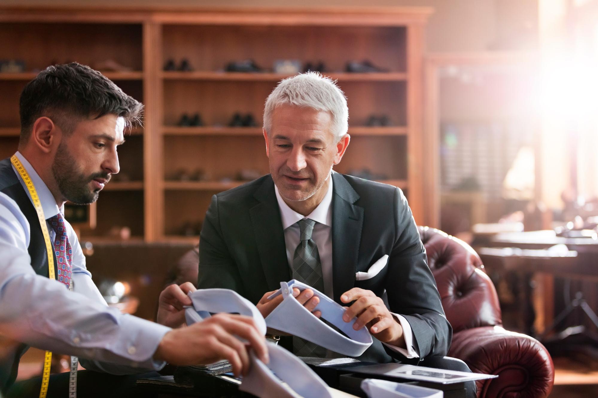 Clients choose from a curated selection of shirting fabrics sourced from some of Europe’s most respected mills.
