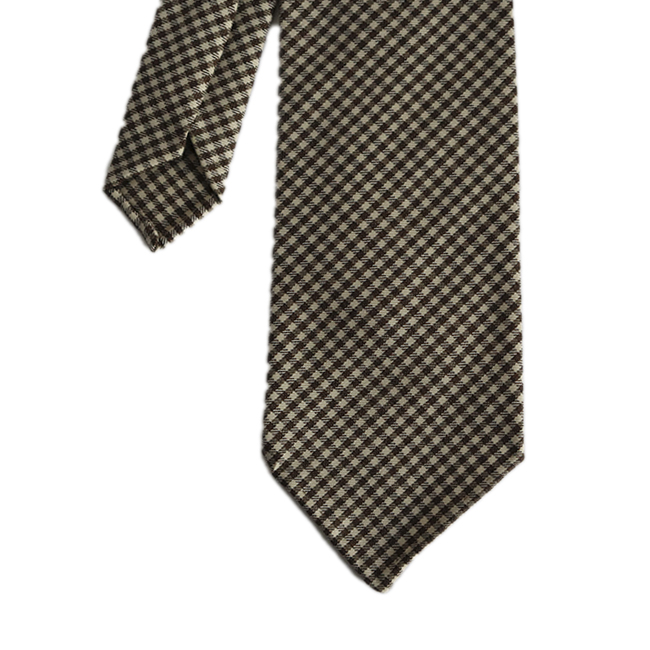 Brown Checked Wool Handrolled Tie
