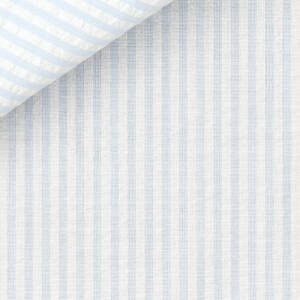 White and light blue seersucker fabric is versatile and great for casual and summer outfits. Select a suitable collar style from button-down to a band collar for an exclusive look. Pair it with chinos, jeans , shorts or trousers. A sport jacket is amplify the outfit. A shorts with a seersucker shirt is simply great for a beach day outfit.